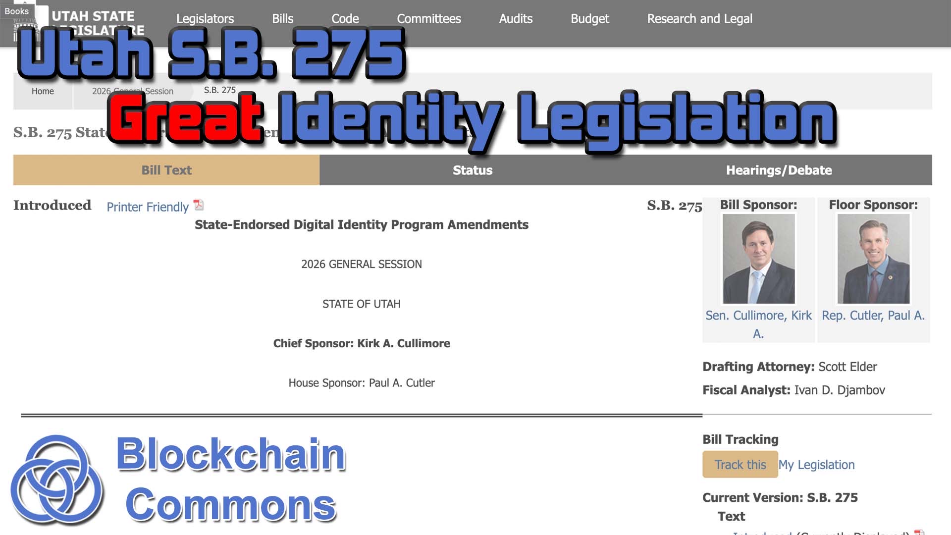 I’m talking about Utah, whose State-Endorsed Digital Identity (SEDI) has been moving in a great direction for a while. The newest bill introduced for it, S.B. 275, the “State-Endorsed Digital Identity Program Amendments”, which does all the heavy lifting of establishing SEDI, solidifies it as a privacy-first, decentralized design.